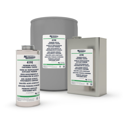MG CHEMICALS 419E este un lac de tropicalizare acrilic ușor de manipulat și cu uscare rapidă, dedicat protecției plăcilor electronice. Este certificat UL746E și IP CC 830C. Acoperirea sa netedă, flexibilă și durabilă îl face o barieră robustă și eficientă împotriva umidității. 419E poate fi îndepărtat cu ușurință folosind un decapant adecvat pentru etapele de reparații sau retușuri.