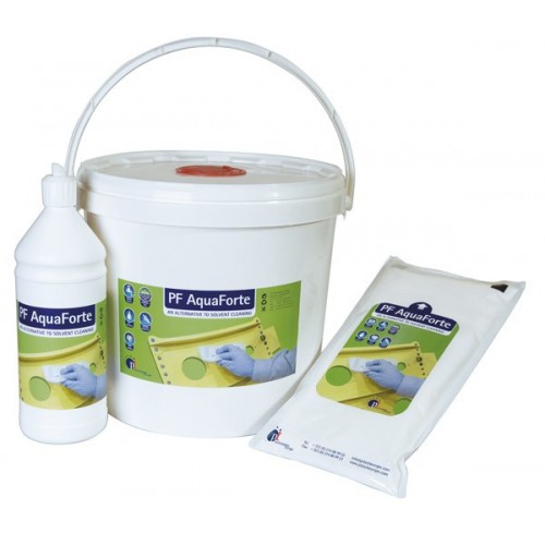 PF AquaForte este o soluție bazată pe apă concepută pentru curățarea suprafețelor, eliminarea PR, a materialului de etanșare, a murdăriei și a reziduurilor de ulei de tăiere de pe metale, compozite și materiale plastice. PF AquaForte este un amestec de detergenți și agenți de curățare. Nu conține substanțe caustice, silicați, fosfați, nitriți, fenol, borați sau butil.