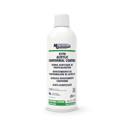 Versiunea aerosol a lacului 419D. 419D este un lac de tropicalizare acrilic cu uscare rapidă dedicat protecției plăcilor electronice. Acoperirea sa netedă, flexibilă și durabilă îl face o barieră robustă și eficientă împotriva umidității. 419D poate fi îndepărtat ușor cu ajutorul unui decapant adecvat pentru etapele de reparații sau retușuri.