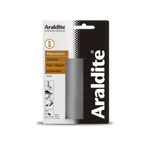 Pasta de reparare epoxidică Araldite este constituită din două componente. Poate fi șlefuită, găurită, filetată, vopsită după uscare finală (72 ore). Odată ce aluatul a fost frământat (în aer liber), acesta aderă la suprafețele umede și poate fi aplicat sub apă.