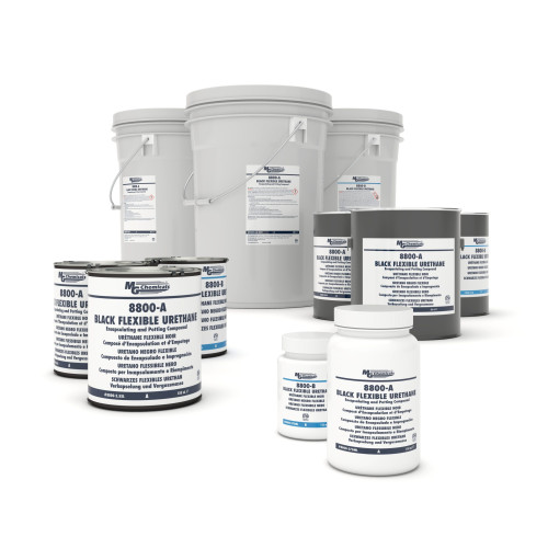 MG CHEMICALS 8800 este o rășină poliuretanică bicomponentă neagră flexibilă cu un timp de utilizare scurt (10 min la 25°C). Aderă pe o mare varietate de substraturi (metal, plastic, ceramică, sticlă) și își păstrează o flexibilitate excelentă chiar și la temperaturi scăzute. Această rășină este ideală pentru învelirea carcaselor electronice și a circuitelor imprimate flexibile și a componentelor electronice. Oferă rezistență la umiditate și expunere la apă sărată, în special pentru aplicații marine.