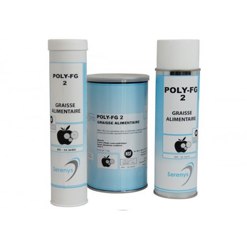 Serenys® POLY-FG 2 este utilizat pentru ungerea componentelor utilizate în procesele din industria alimentară și a băuturilor și în orice mediu curat: armături, supape, garnituri, lamele, rulmenți și angrenaje utilizate în abatoare, măcelării, instalații de prelucrare a cărnii, instalații de conserve, uzine de îmbuteliere, fabrici de biscuiți, brutării, fabrici de ciocolată, fabrici de patiserie daneze, fabrici de produse alimentare și industrii farmaceutice și paramedicale. Piese de utilaje în atmosfere umede și pentru ungere îndelungată.