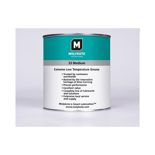 Molykote™ 33 Medium este o unsoare pentru temperatură foarte scăzută (până la -73 °C / -99,4 ° F), rezistență ridicată la oxidare, gamă largă de temperaturi de lucru, performanțe bune la temperaturi scăzute, compatibilă cu multe materiale plastice.