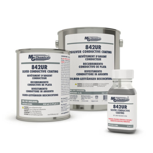 MG CHEMICALS 842 UR este o vopsea conductoare din poliuretan încărcată cu argint, special concepută pentru a oferi o protecție eficientă împotriva interferențelor electromagnetice (EMI). MG CHEMICALS 842 UR este un strat de acoperire cu uretan utilizat pentru Protecția circuitelor imprimate / Izolația electrică / Protecția împotriva umidității și a produselor chimice / Întărirea mecanică a componentelor electronice.